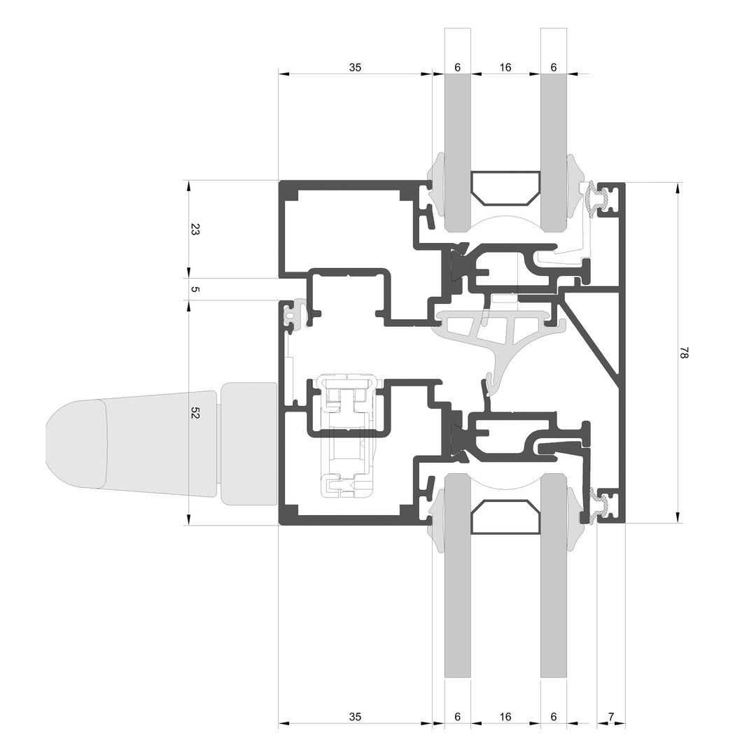 CE 70000 Hidden Sash is a Tilt & Turn system for highly insulated doors and windows which can fit either a European Groove or a Euronut mechanism. Hinged hidden sash window system with a frame depth of 73 mm [2.9”]. Exterior sight-line, only 73 mm (2.9”). Maximum glazing surface. The extraordinary increase in luminosity. Possibility of incorporating hardware with concealed hinges.